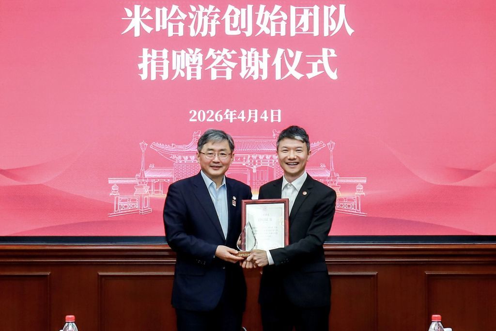 4月4日,上海交通大学徐汇校区总办公厅,米哈游联合创始人、总裁、董事长,上海交通大学2005级信息工程专业本科、2009级通信与信息系统专业硕士校友刘伟,代表米哈游创始团队蔡浩宇、罗宇皓,共同捐资助力学校设立的“AI未来基石”基金,为母校在人工智能前沿领域的探索注入新动力。蔡浩宇、罗宇皓虽未能亲临现场,但通过刘伟的转达,向母校和在场师生送上了诚挚的问候与祝福。