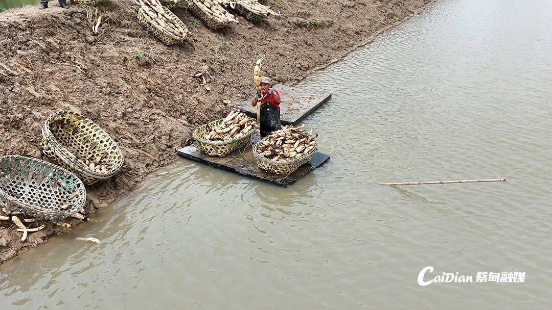 此前已有5000斤藕种落塘,4月9日第二批又投放约9000斤,企业计划在4月25日前完成300亩藕田移栽工作,将30亩藕种扩繁至300亩。